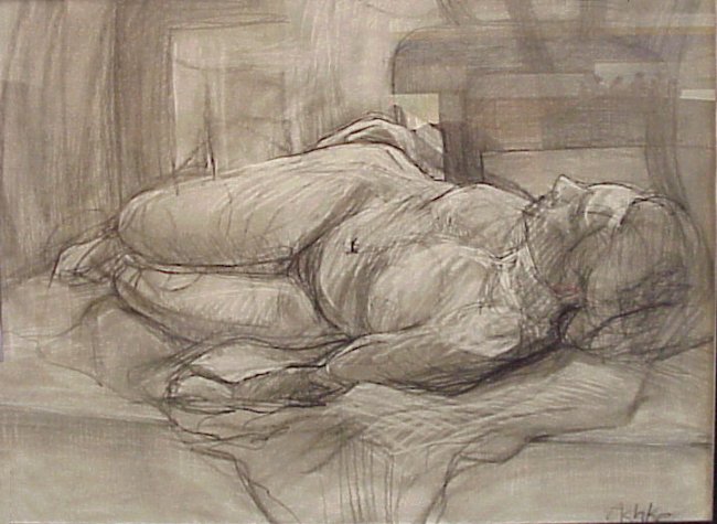 Rachael Miller, Reclining Figure in Charcoal and Conte |